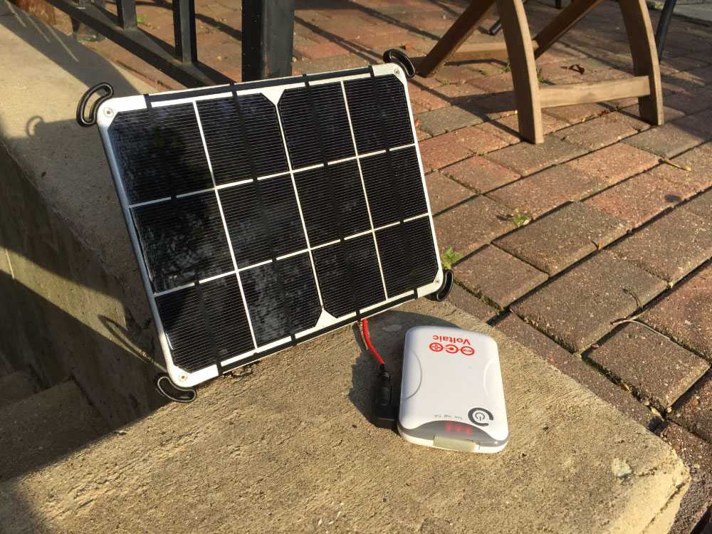 We decided to go with an iPad-sized six watt panel from Voltaic. The panel was designed for rugged use, and came with a connector that we could easily modify to feed into our prototype. We learned our first lesson by testing how long the panel took to charge the USB battery pack that came with the panel. I was on my bike that day, so I decided to strap the unit to my backpack and see if we could charge the battery at all on my ride home.